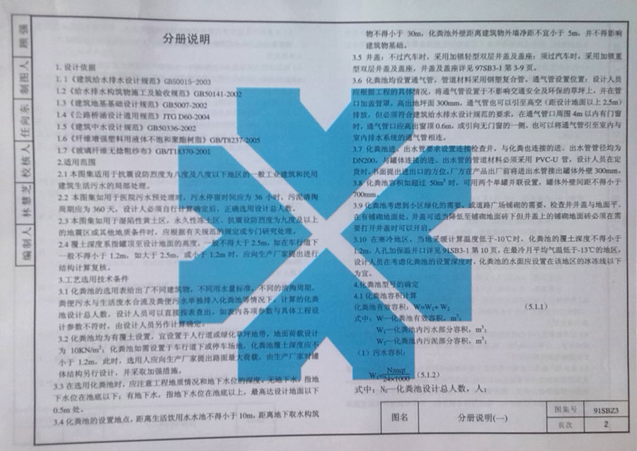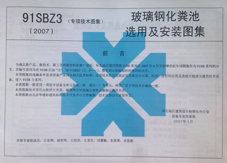 91sbz3(2007)玻璃鋼化糞池選用及安裝圖集
